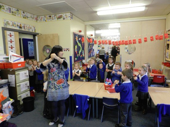 2012年2月6日是壬辰龙年的元宵佳节,也是龙历新年的最后一天。Horbury的汉办老师很荣幸得受邀于 Ossett South ParadePrimary School,为其reception班级的学生讲解中国年,此次活动也是该校为期一周的中国年主题活动的"压轴戏"。