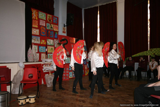 这些成果的展示得益于整个学校各个部门的相互配合,早在一个月前,学校的艺术课,戏剧课,音乐课就已经开始了对中国的神话传说,皮影戏,泥塑,灯笼,音乐的介绍,很多学生还利用午饭时间和放学时间来不断地排练并乐此不疲,这对一向懒散的英国学生来说绝对不是件易事。
