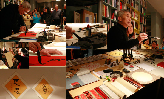 为了筹备曾先生的讲座,PAX书店张贴了曾先生的部分优秀作品并准备了和书法相关的书籍迎接来宾,整个书店洋溢着翰墨之香。曾先生当晚的见面会包含“中国书法的艺术地位”、“文房四宝及印章”、“篆、隶、楷、草的特点”以及“书法与生活”等部分,现场创作了五幅作品,还将现场创作的“龙”字赠与了现场属龙的比利时观者。观众被书法艺术的魅力和曾先生的作品深深吸引。