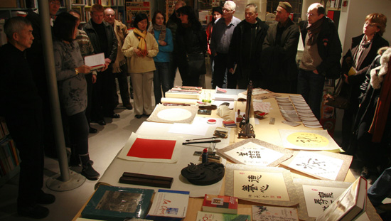 当日夜间6时,列日及周边地区喜爱中国书法的比利时友人及华人艺术家汇聚在PAX书店,共同聆听了曾先生关于书法基础知识的讲解并观看了曾先生现场表演的的书法作品完整的创作过程。