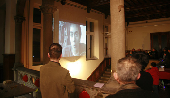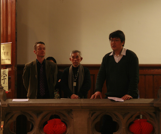 当日晚间19点整,比方院长艾立克、中方院长王鹏向各位来宾致辞,并介绍了孔院特意邀请的艺术家——书法家曾炳炎先生,以及从事版画和影视制作的曲良臣先生。刚在台湾高雄第七届金甘蔗影展获得“最具文化纪录片奖”的曲良臣奉献给大家的是他走访中国的北京和台湾以及比利时各地,采访数十位中外人士汇编的春节团圆主题短片,短片展示了中外人士庆祝新春的活动、中国人心中浓浓的思乡情怀以及比利时人对春节的兴趣。而曾炳炎先生则带来了文房四宝和空白的长卷,他将现场表演书法的长卷创作。