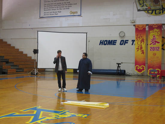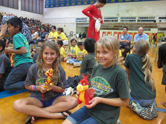 2012年1月30日中午一点,夏威夷凯泽高中体育馆中传来了熟悉的中国民歌。浙江师范大学艺术团的歌舞武表演和丁广泉老师弟子们的相声表演,赢得了孩子们的热烈掌声和阵阵惊叹。