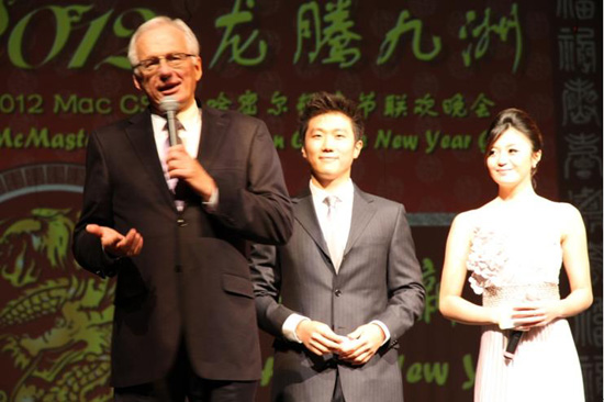 1月14日晚七点,汉密尔顿市莫霍克学院McIntyre剧场内人头攒动,热闹非凡。2012年“龙腾九州”春节联欢晚会在欢乐祥和的节日气氛中拉开帷幕。本次春节晚会由麦克马斯特大学中国学生学者联谊会(CSSA)主办,麦克马斯特大学孔子学院协办,在组织筹办过程中还得到了当地华人社区和非华人社区的大力支持与帮助。汉密尔顿市长与近千名观众观看了本场晚会。