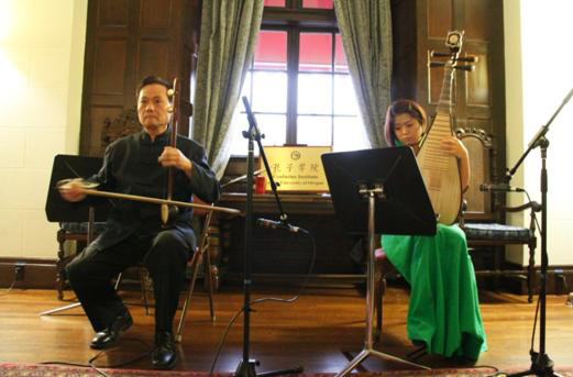 一月十九日,中国农历新年即将来临之际,俄勒冈大学孔子学院为庆祝壬辰龙年,特意从纽约请来两位中国民乐演奏家夏文杰先生、周懿女士进行演出。