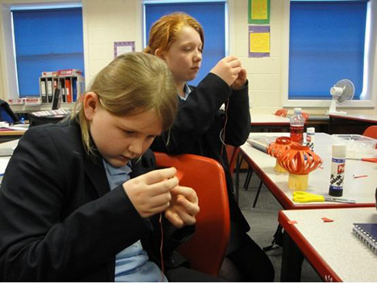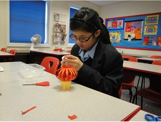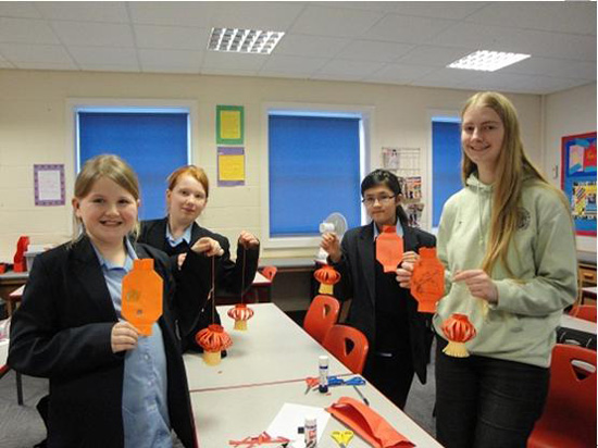 2012年2月6日,中国传统的元宵佳节,在英国格兰瑟姆的一所女子中学KGGS的课堂上,孩子们正在专心制作中国灯笼。