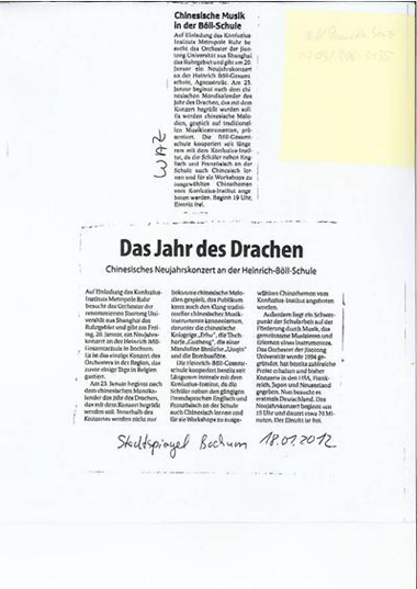 当地媒体的报道题为:《伯尔中学的中国音乐会》和《龙年——伯尔中学的新年中国音乐会》