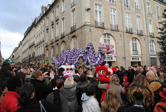 2012年1月28日(农历大年初六),法国布列塔尼孔子学院主办的“龙狮欢腾贺新春”以及“中华美食街”活动在布列塔尼大区区府所在地雷恩市市政厅广场前成功举办。