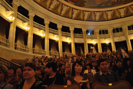 2012年2月18日下午3点,在能容纳600多观众的布里亚特国家模范歌舞剧院里可谓是高朋满座,嘉宾云集。来自布里亚特共和国教育部的官员、布里亚特国立大学校长、副校长以及社会各界人士都盛装莅临出席了由中国国家汉办/孔子学院总部主办、黑龙江大学承办的“2012孔子学院大春晚” 巡演晚会,共同欣赏了黑龙江大学巡演团精彩纷呈的中国民族歌舞表演。