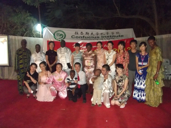 尼日利亚拉各斯大学孔子学院20日晚张灯结彩、歌声阵阵。来自尼日利亚教师员工和学生和华侨华人200多人举行联欢会,共庆中国的传统节日春节的到来。
