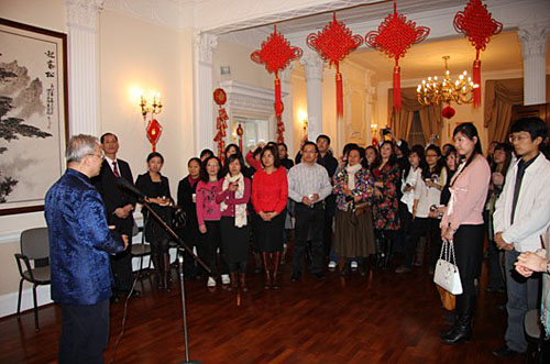 2月27日(农历正月十四),驻英使馆教育处邀请在全英孔子学院、孔子课堂及相关汉语教学机构执教的国家汉办公派汉语教师和志愿者50余人举行座谈会并欢庆元宵佳节。