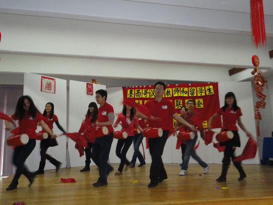 墨西哥驻墨大使馆文化处教育专员丁文林老师及其爱人莅临本次活动,与广大师生欢聚一堂,喜迎新春佳节的到来。节目开场,墨西哥城孔子学院的汉语老师们就献上了一场精彩的腰鼓表演,他们身着孔院院服,手舞红绸,腰系腰鼓,一下子将新年的浓郁气氛带给了现场的每一位来宾。