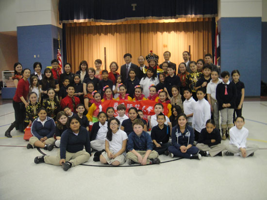 第一场演出在 Railwoods Elementary School举行,艺术团根据演出场地和小观众的需求,临时增加了民乐认知等片段。笛子、二胡等传统民族乐器、《踏歌》等民族舞蹈一下子便吸引住了小观众们,《变脸》等中华国粹的现场演出把整个活动推向高潮。活动最后,演员和师生们互赠纪念品,并合影留念。此场演出也成为了当地学生中国文化学习课程的内容。