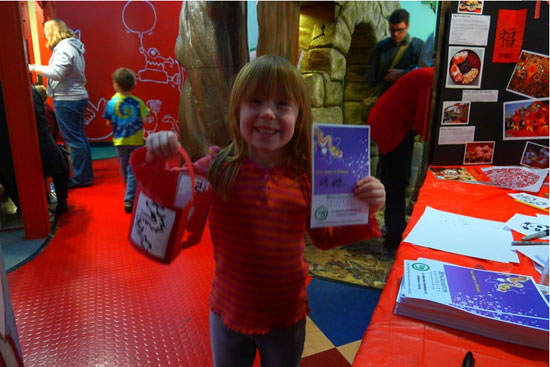 “写中文名”吸引来了许多小朋友,有的孩子特别兴奋的对我们志愿者说“天啊,中文名字,我想知道我的中文名字”,有的孩子显得有些害羞地说“你可以帮我写我的中文名吗?”,甚至还有美国家长来到这里希望我们也帮他们写一下他们的名字,然后便跟我们攀谈起来,饶有兴趣的问我们在中国过年都有什么习俗?除夕夜都要做些什么?中国的家长会跟孩子们一起做些什么呢?
