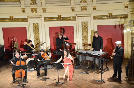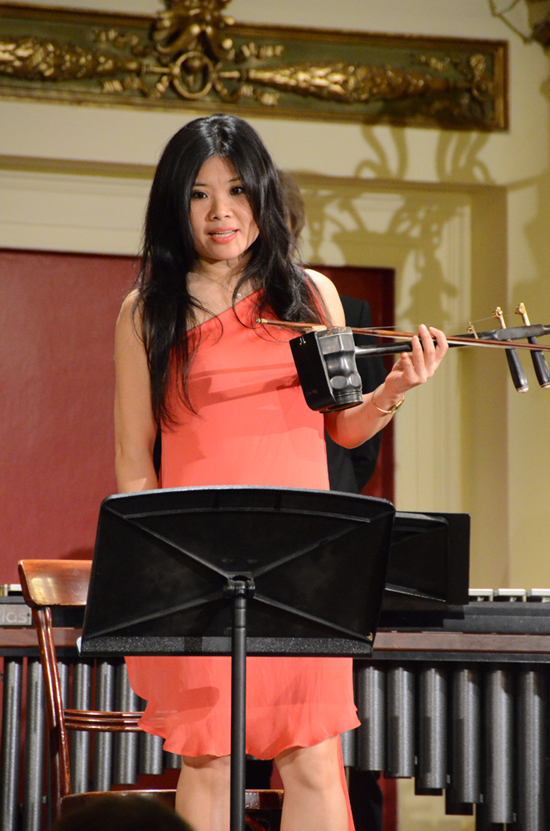 维也纳孔子学院外方院长李夏德教授致辞,欢迎“邓小梅国际乐团”赴奥表演。该乐团的7名音乐家都来自欧洲各国,其演奏以中国民族乐器二胡为主,加上提琴、萨克斯、颤音琴和架子鼓多种西洋乐器,巧妙地将东方与西方的距离拉近。表演曲目均基于不同地区不同时代的中国乐曲改编而成,既包含了中国传统音乐特色又融合了欧洲古典音乐与现代音乐的元素,如爵士舞、拉丁舞等即兴元素,加之乐团已据其特点发展成有自我风格极富创造力的团体,所以演奏起来尤为得心应手。