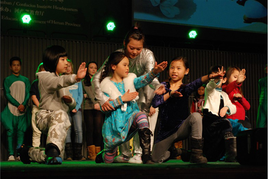 随后,在少林寺的“暮鼓晨钟”声中,“武林汉韵”演出正式拉开帷幕。一支“牧羊曲”把观众带入了少林弟子刻苦习武的场景,为这一节目友情献唱的是来自斯德哥尔摩一家中国餐馆的老板娘高玉玲,她清亮柔美的嗓音为这一节目增色不少。