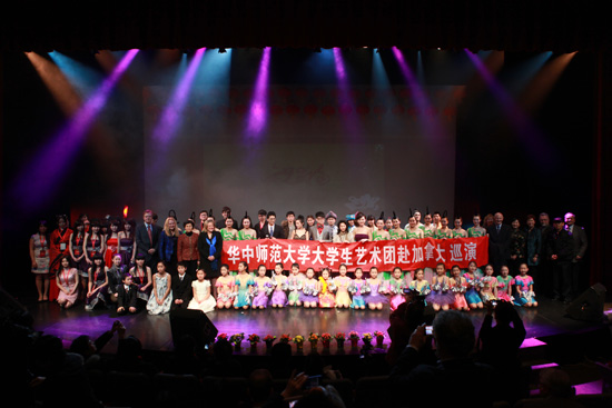 2012年春节期间,受国家汉办/孔子学院总部委派,华中师范大学艺术团师生一行25人在副校长黄晓玫的带领下赴加拿大开展了为期16天共8场的“孔子学院大春晚”巡演活动,观众总数多达万人。