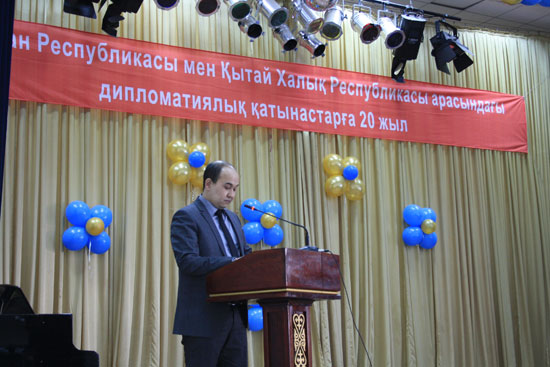 2月17日,欧亚大学孔子学院隆重举办庆祝中哈建交二十周年暨孔子学院建院五周年联欢会。应邀出席本次联欢会的中方嘉宾有中华人民共和国驻哈萨克斯坦共和国大使馆大使周力先生、文化参赞程宏刚先生、文化一秘郎幼赤女士、北京大厦总经理王卫东先生、中国驻哈各企业代表处代表,哈方嘉宾有国立欧亚大学副校长如玛泰伊∙ 乌拉兹巴耶夫、副校长杜曼∙ 艾伊特玛卡姆别托夫先生、哈萨克斯坦农业大学汉语教育中心主任杜曼∙依马买地先生以及欧亚大学各系部主任等。
