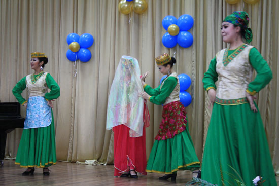 孔子学院学生为来宾们奉献了他们精心准备的节目。由“茉莉花”舞蹈队表演的歌舞《友谊之舞》为活动拉开了帷幕。接下来表演的有独唱、合唱、舞蹈、器乐、诗歌朗诵等,可谓丰富多彩。这些节目不仅具有鲜明的友谊主题色彩,更体现出中哈文化的特有魅力,为联欢会增添了欢快、喜悦的气氛。精彩的表演使所有来宾都为之陶醉,甚至连楼道里都挤满了闻讯前来观看节目的师生。大家纷纷称赞文化的感染力和友谊的凝聚力。我们相信,在中哈各方的共同努力下,孔子学院的未来前景会更加美好。