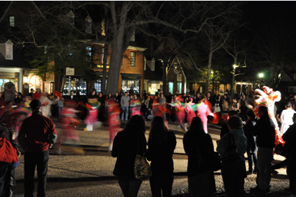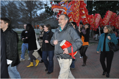 孔子学院与国际处共同资助的全球电影节正式拉开了中国文化学期的帷幕。2012年2月18日举办了开场活动,包括游行活动和街头表演。参与者不光是威大的学生,而且还有当地华人社团(PCCA半岛华美协会)、中文学校(Williamsburg Chinese School)以及周边城市(Richmond)的舞蹈者。现场观众多达400余人。这对于一座仅有一万多人的小城市来说,可以算是一件轰动全市的大事。