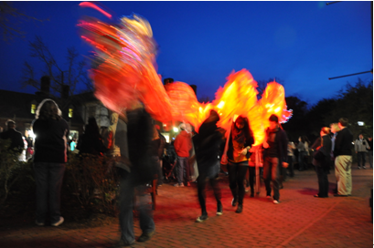 北师大访问学者王杰和开场活动的策划人Emily Wilcox (魏美玲)教授一起编排了此次秧歌表演舞狮子的是威大学生