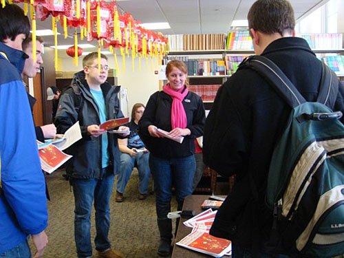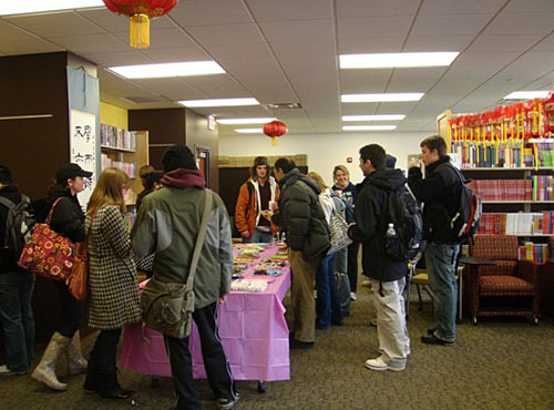 2月12日,美国俄亥俄州迈阿密大学孔子学院装饰一新,在这里,孔子学院举办了2010年欢庆中国春节招待日活动。