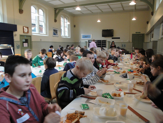 中午在学校餐厅,所有参与此次活动的老师和学生品尝了中国食物。令人惊奇的是,有的学生显然已经在筷子比赛的游戏中掌握了筷子的基本使用方法,能够使用筷子夹起面条或者其他食物了。