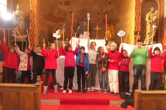 游戏结束以后,孩子们来到学校的教堂里,观看了由伙伴们自己制作表演的皮影戏。作为学校“手工工作坊”的活动之一,本期工作坊的孩子们事先准备了用于表演的“皮影”,老师再将中国新年的由来“年兽”故事进行了加工,一幕精彩的《中国姑娘大战年兽》的皮影戏剧就完成了。皮影表演将中国新年来历生动形象地印在每一个孩子的脑海里。