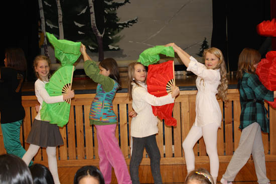 活动在一曲茉莉花的优美音乐中拉开了序幕,一群美丽的可爱的小姑娘手里舞动着五颜六色的彩扇翩翩起舞。接下来小朋友们生动活泼的表演了话剧 《 大灰狼来了》,引来满场的笑声与掌声。