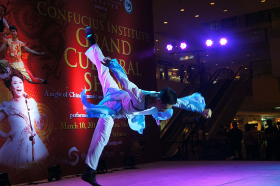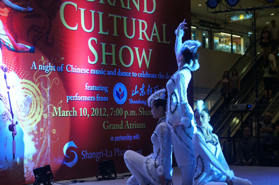 当晚,巡演团在香格里拉商场进行了首场演出。中国驻菲律宾大使馆文化参赞潘峰先生、孔子学院外方院长黄淑琇博士、中方院长刘小芳老师及菲律宾主流社会各界人士,与孔子学院师生及当地市民们一起观看了演出。