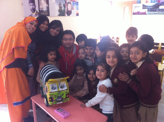 巴基斯坦广播孔子课堂师生完成传统卡车装饰绘画作品后合影留念