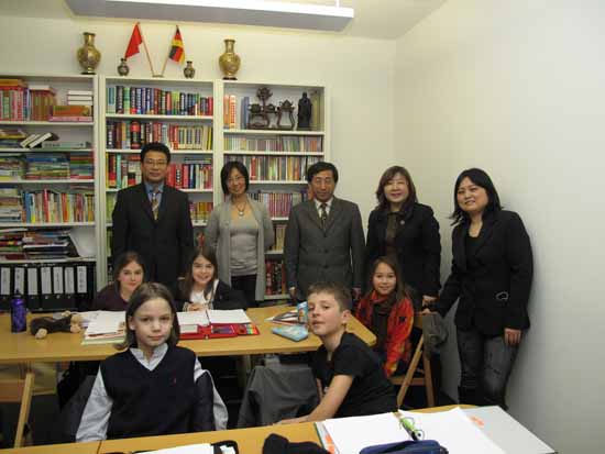 近日,王总领事在访问慕尼黑孔子课堂时,与学习汉语的德国儿童亲切交谈,并会见慕尼黑孔子课堂合作人、德国著名律师、慕尼黑东方基金会会主席柏拉特教授。王总领事高度评价慕尼黑东方基金会多年来为促进中德文化交流所做的贡献,特别是该基金会与北京外国语大学合作,于2009年正式挂牌成立慕尼黑孔子课堂,使巴伐利亚州和慕尼黑市有了一个中德文化交流的新平台,取得的成绩令人欣慰。双方还就慕尼黑孔子课堂加强汉语教学、筹办庆祝中德建交40周年和“中国文化年”活动进行了深入交谈。