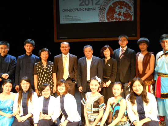 演出结束后,童德发副总领事等和演员合影