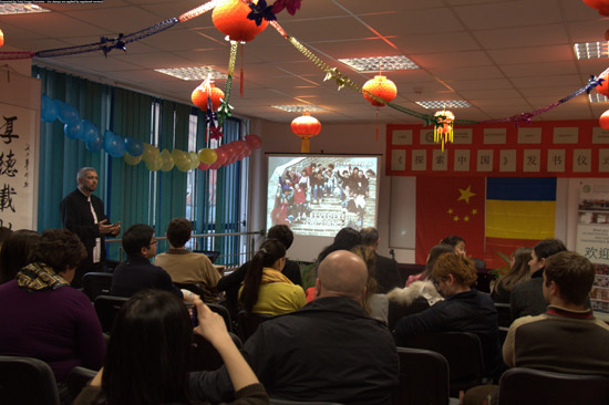 讲座前一天,3月29日晚,Daniel Tomozei先生在罗马尼亚克鲁日孔子学院举行了《Discovery China-Beijing》的新书发布仪式。Daniel Tomozei先生现在中国国际广播电台工作,他将自己2年多在北京的真实生活体验以100多幅图片的形式向大罗马尼亚公众介绍了北京的名胜古迹、北京的交通及普通民众的生活。通过他的紫禁城摄影作品,罗马尼亚公众了解了中国古代的建筑哲学,孔庙的图片介绍也让大家进一步熟悉了孔子的儒家思想。一张张精美的摄影作品和简洁生动的讲解,进一步加深了人们对中国北京的认识,发书仪式后,Daniel Tomozei先生给在场每个人签发了新书,并给克鲁日孔子学院图书馆捐赠了30本新书。(图二)
