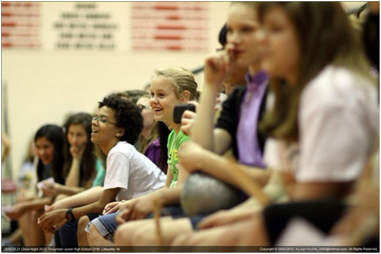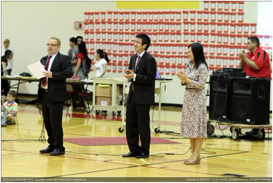 2012年3月21日晚,美国印地安纳州拉法耶市Tecumseh中学的体育馆人声鼎沸,热闹非凡,第四届“中国之夜”文化活动在这里成功地举行。来自拉法耶学区的学生、家长以及社区各界人士300多人在这里体验了中国悠久而富有生命力的文化,感受到了中国人的热情和友好,也进一步增进了两国民众的沟通和交流。