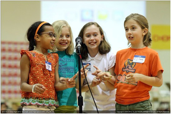 2012年的“中国之夜”,是普渡大学孔子学院拉法耶学区孔子课堂举办的第四届文化活动,该活动已经成为拉法耶学区语言教学和文化教育的重要节日。三个小时的活动很快就结束了,但所有的美国学生和家长们都流连忘返,热诚期待着明年的“中国之夜”。