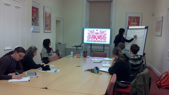 2012年2月10日晚,“汉语文化角”再次在苏格兰爱丁堡孔子学院正式启动,约有20余人参加这次活动,其中既有爱丁堡大学的师生,也有热爱中国文化的社会人士。