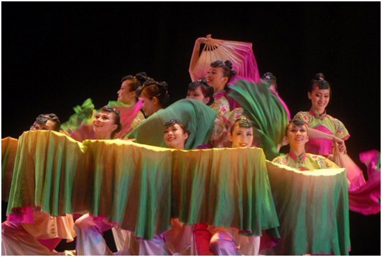 晚上8点30分,开场舞蹈“六月清荷”拉开了演出的序幕,一群少女用曼妙的舞姿表现了六月荷塘中出水清荷那一枝独秀、纤尘不染的清新之美。随后的民间舞蹈“鄂温克的冬天”、“顶碗舞”、“山南果谐”、“孔雀舞”、“小鼓舞”、“莲花”、“刀郎麦西鲁普”,则展现了中国鄂温克族、蒙古族、藏族、傣族、朝鲜族、维吾尔族等少数民族多姿多彩、乐观向上的精神世界,“戏刘海”、“鼓乡情韵”、“采茶时节”通过风趣幽默、灵动洒脱的表演,生动地体现了劳动者的生活情趣和对美好生活的热烈向往。持续一个半小时的演出高潮迭起、掌声阵阵,台下近5000名观众看得聚精汇神,深深地沉醉于中国民族舞蹈所展现的东方情韵之中。