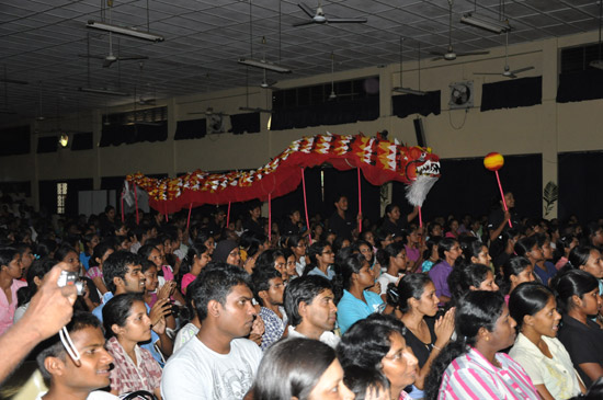本次国际文化节在凯拉尼亚大学大礼堂举行。俄罗斯、德国、韩国、日本、等国驻斯里兰卡大使馆代表、凯拉尼亚大学副校长、人文学院院长、语言系主任、孔院院长与师生、各学院教职工以及学生等1000余人观看了文艺晚会。