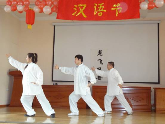 本次活动共分中国文化图片展、中国文化及汉语知识竞赛、文艺演出等三个板块。主办方经过精心安排制作,将三个板块融合在一起,为大家献上了一场别开生面的视听盛宴。独具中国特色的舞蹈《好日子》、中国剪纸艺术现场展示、歌曲《隐形的翅膀》、令人捧腹不止的小品以及书法比赛、绕口令比赛、汉语知识竞赛、中文歌曲比赛将现场气氛推向一个又一个高潮,孔子课堂中方院长张代生老师还同两位志愿者现场表演了太极拳。
