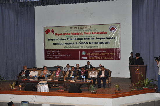 2012年4月8日,在2012年中尼友好年之际,国际台尼泊尔广播孔子课堂与尼中友好青年协会共同在尼泊尔著名城市奇特旺举办为期两天名为“中国,尼泊尔的好邻居”的座谈会及主题电影图片展。尼泊尔青年体育部长格莫拉•洛卡女士,尼泊尔制宪议会议员纳拉扬•博尔萨特•达哈尔先生,尼泊尔青年友好协会主席鲍德尔先生,中驻尼大使杨厚兰阁下,文化参赞邹冰女士,国际台尼泊尔广播孔子课堂中方负责人席飞洋及尼各界友好人士300余人参加了此次文化活动。