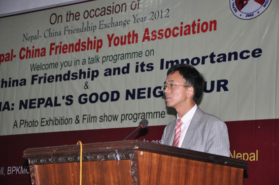 中华人民共和国驻尼泊尔大使杨厚兰阁下在发言中对尼青年体育部长的讲话表示欢迎和感谢。他说,尼泊尔是中国的好邻居,历史上松赞干布与尼赤真公主的联姻便开启了中尼间的友好旅程。青年一代是一个国家的未来,中国的伟大领袖毛主席曾将年轻人比喻成祖国的太阳。中国十分愿意看到尼泊尔能培养出一代又一代具有国际竞争力的青年,并十分欢迎尼杰出青年与中国优秀青年进行交流。最后,他表示中国愿进一步推进中尼两国间的友好交往。