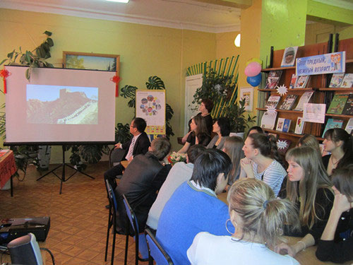 春天伊始,万物复苏。阿穆尔国立人文师范大学孔子学院迎来了成立以来的第二个春天,也是孔子学院在当地开展汉语教学的第二个年头。为了进一步扩大汉语教学在该地区的影响,扩大中国文化在当地的认知度,孔子学院与阿穆尔共青奥斯特洛夫斯基图书馆(Городская библиотека имени Островского)第15分馆合作,联合举办汉语图书展暨中国文化介绍活动。