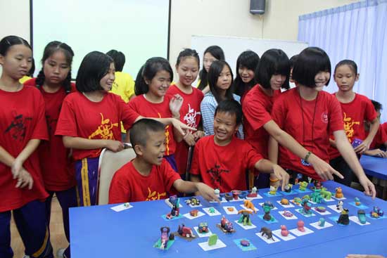 针对泰国学生动手能力强、想象力丰富的特点,教师们采取了新颖独特的教学方法,汉语学习与实践体验相得益彰。在老师的指导下,营员们学完“水果”,便精心准备,制作出五颜六色的水果拼盘;学完“动物”,孩子们便抡起衣袖用橡皮泥捏出了俏皮多姿的熊猫、大象、十二生肖动物等,稚嫩的作品展示出一个奇幻的动物世界;学习了“中国京剧”,营员们便亲手勾画、剪制并戴上京剧脸谱,一个个神气活现,手舞足蹈;课后“眼保健操”更是将中医保健纳入夏令营的首次有益尝试。“眼保健操开始,闭眼”,伴随轻柔动听的音乐,营员们认真地“揉天应穴”、“挤按晴明穴”、“揉四白穴”、“按太阳穴轮刮眼眶”……