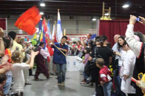 国际节第一天中午,国旗游行(parade of nation)活动掀起了本次国际节的第一个高潮。在这个环节中,高举五星红旗的中国旗手穿过现场的国旗大道,赢得了现场观众的热烈掌声。其中很多美国观众甚至用中文“你好”,“加油”来给中国的旗手加油鼓劲,也突显出美国民众对中国的普遍友好之情。本次国际节的第二天,在时装表演(costume fashion show)环节,穿着中国民族服装的美国小朋友在台上表现得落落大方,博得了台下观众的阵阵掌声。