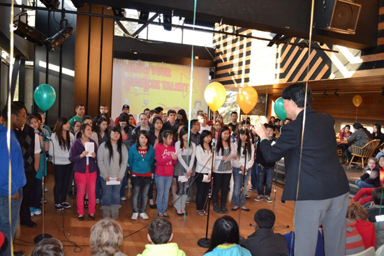 四月二十七号,本月孔院活动的重头戏:“汉语达人秀”在阿拉斯加大学学生中心拉开帷幕。参加此次演出的有来自大学、高中、初中以及小学的近两百名学生,这些学生都是在老师的组织下自愿报名参加演出的。活动中,学生们热情高涨,纷纷秀出自己在汉文化方面的一技之长。有的表演古诗词联唱,有的演奏中华传统乐器,有的表演中华传统舞蹈,还有的则表演自编自导的汉语小故事。无论是二十多岁的大学生,还是十来岁的小学生,亦或是几十岁的汉语爱好者,都沉醉于中华文化之中,尽情地展示自我。精采纷呈的节目博得了在场观众的热烈掌声,热闹的气氛一浪高过一浪,仿佛要掀翻整个表演场地。真可谓是歌的世界,舞的海洋。通过此次达人秀,学生们不光展示了自己学习汉语的成果,更加增强了对中华文化的热爱和学习汉语的自信心。活动后,孔院院长为指导教师及参演学生颁奖,孔院还提供了中国传统食品作为学生们的午餐。餐后,由志愿者带领着孩子们参观了大学校园和孔子学院,为本次达人秀画上完美的句号。