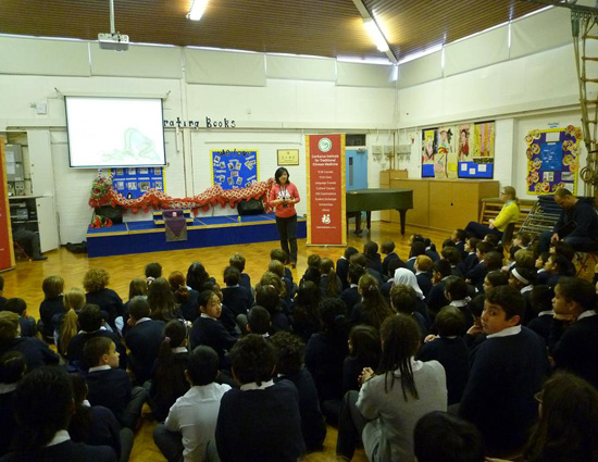伦敦中医孔子学院教师给全校师生介绍 “中国龙”
