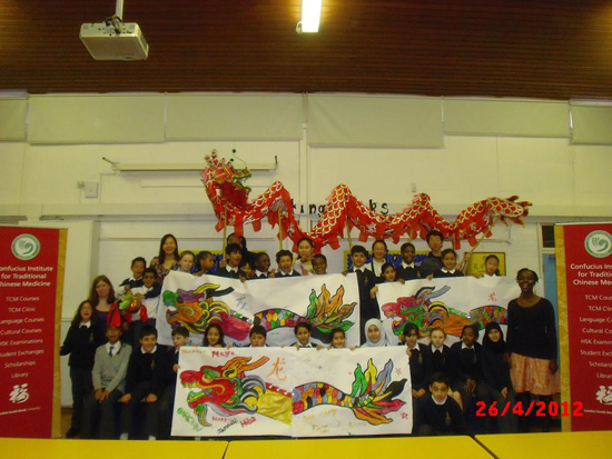 2012年4月26日,伦敦中医孔子学院在圣玛丽布莱恩斯顿小学成功举行了以“舞动中国龙”为主题的文化体验课活动。此次活动受到了圣玛丽小学校教师与学生的热烈欢迎。