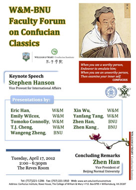 [!--allfrom--]| 威廉玛丽大学孔子学院举办系列高端学术论坛 | |
