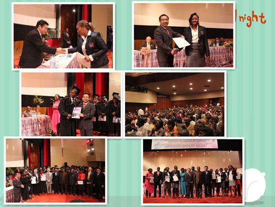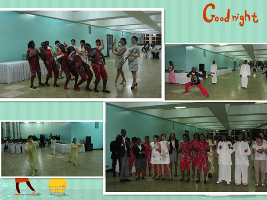 晚上9点,该校举行了隆重的毕业晚会。在晚会上,雅温得第二大学孔子学院带来的歌曲“欢迎来到孔子学院”、中国武术、太极拳、旗袍秀等一系列富有中国特色的节目,受到了该校师生及学生家长们的热烈欢迎。虎虎生风的拳风、极富感染的中国音乐、氛外妖娆的旗袍秀以及行云流水的太极拳,感染了在场的观众,引起了阵阵掌声。“孔子学院老师们为培养高等商业学院的学生汉语能力,付出了巨大的努力,今天又看了她们表演的节目,我觉得非常好,希望以后能多开办一些中国文化才艺方面的培训,” 喀麦隆本土教师张宝玲透露了学生们的心声。