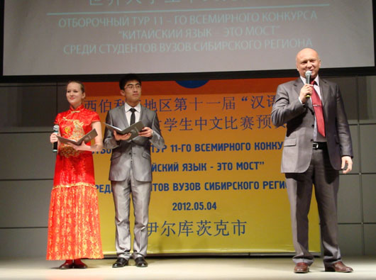 西伯利亚地区第十一届“汉语桥”世界大学生中文比赛预赛于五月四日在伊尔库茨克市贝加尔商务中心隆重举行。此次比赛由中国驻伊尔库茨克总领馆和伊尔库茨克国立大学孔子学院共同主办。